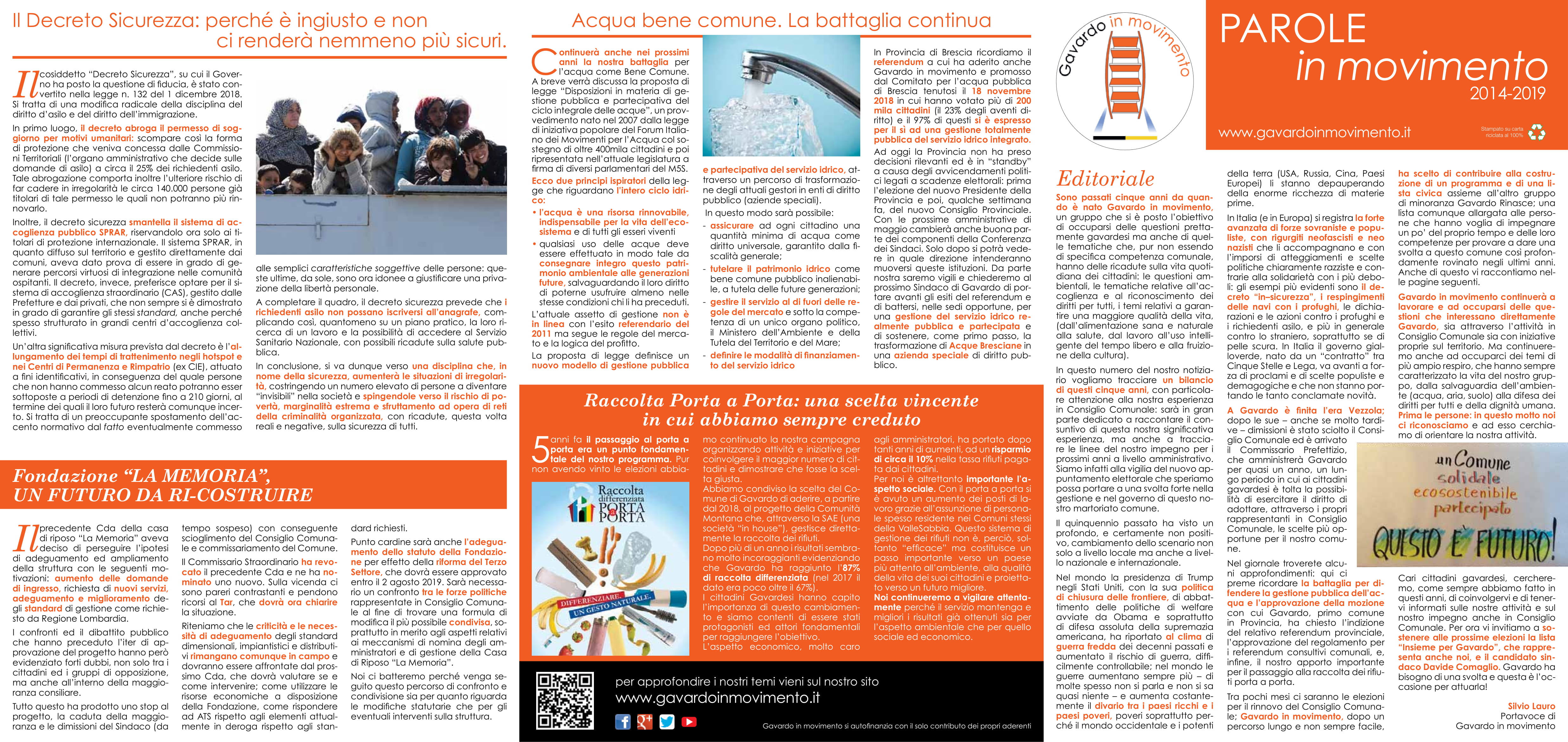 Per questo Gavardo in movimento aderisce e chiede ai cittadini gavardesi di aderire alle iniziative promosse dal Forum Italiano dei Movimenti per l’acqua e per quanto riguarda il nostro territorio a quelle proposte dal Comitato Referendario Acqua Pubblica di Brescia.