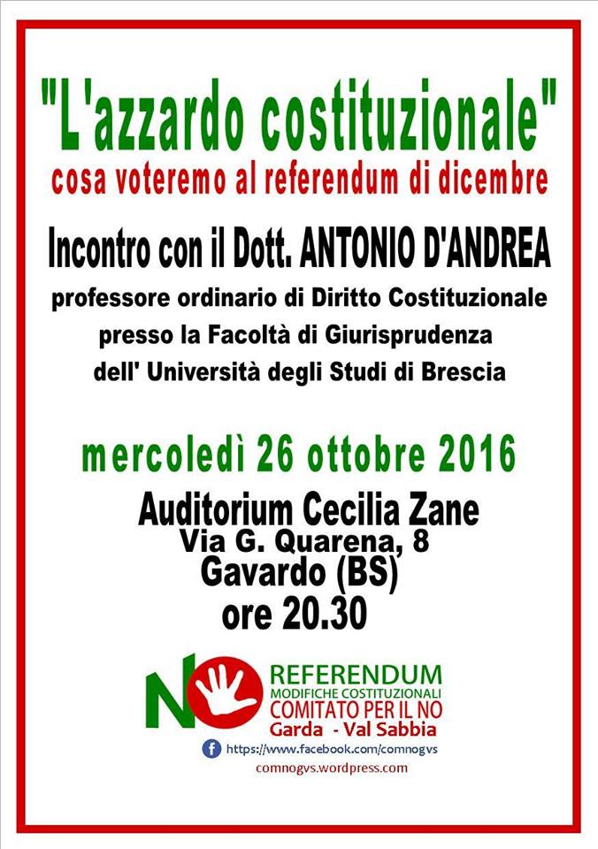 Mercoledì 26 Ottobre alle ore 20:30 presso l’auditorium Cecilia Zane di Gavardo si terrà l’evento “L’azzardo Costituzionale”.